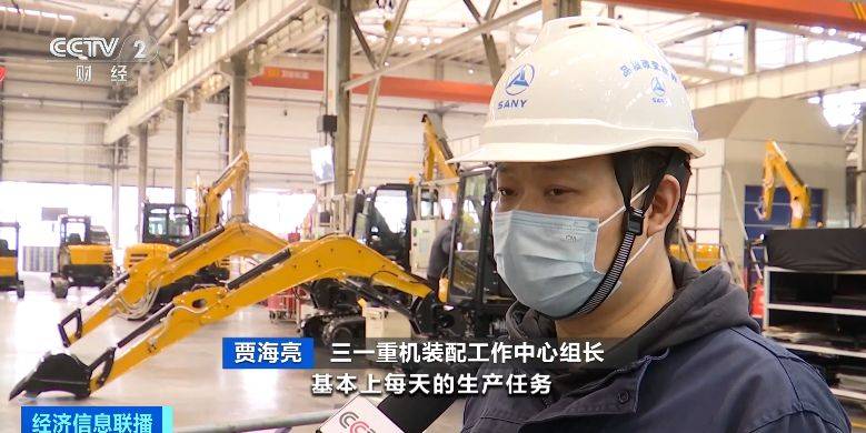 三一重机装配工作中心组长贾海亮:跟着时间抢跑,现在订单确实比较多、比较急。现在基本上每天的生产任务都处于满负荷状态。