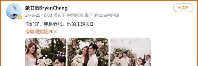 至少从明面上来看,汪峰和森林北目前仍在谈恋爱。 6月,三组娱乐圈恋情官宣 2024年6月29日, 欧阳妮妮 和 张书豪 同步发文官宣恋情, 并透露张书豪已成功向欧阳妮妮求婚 。